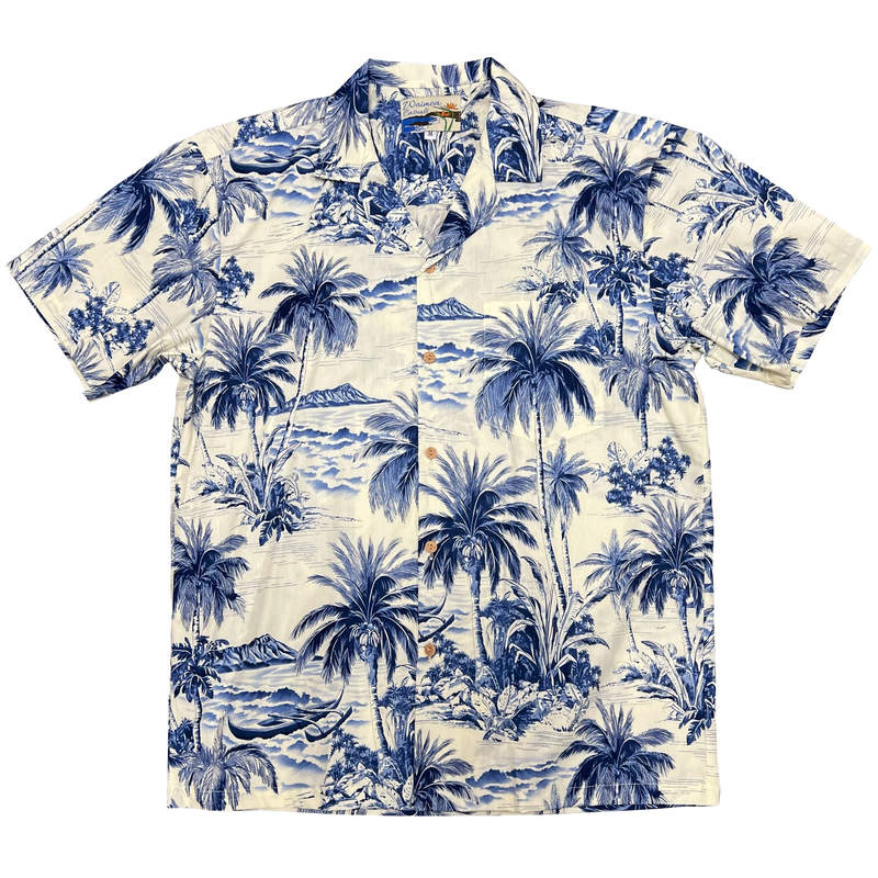 Cette chemise WAIMEA WAIKIKI BEACH BLUE nous viens d’Honolulu