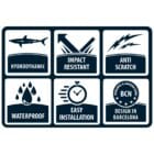 2 bandes x 191 cm (6’3″) x 6,3 cm (2’1/2) surface à motif lenticulaire en PVC semi-rigide de 380 microns pour une résistance élevée aux chocs et à l’abrasion avec un poids minimum.